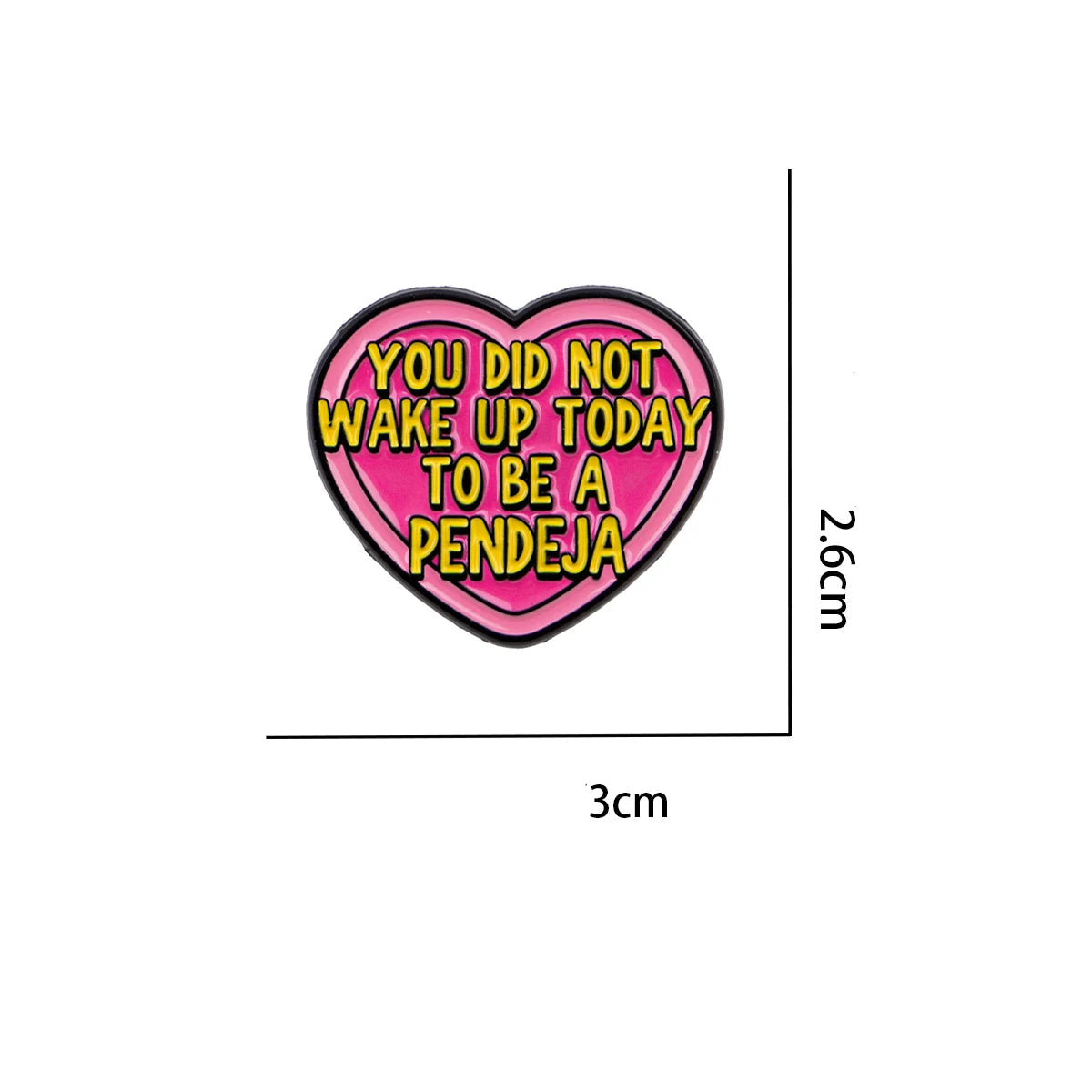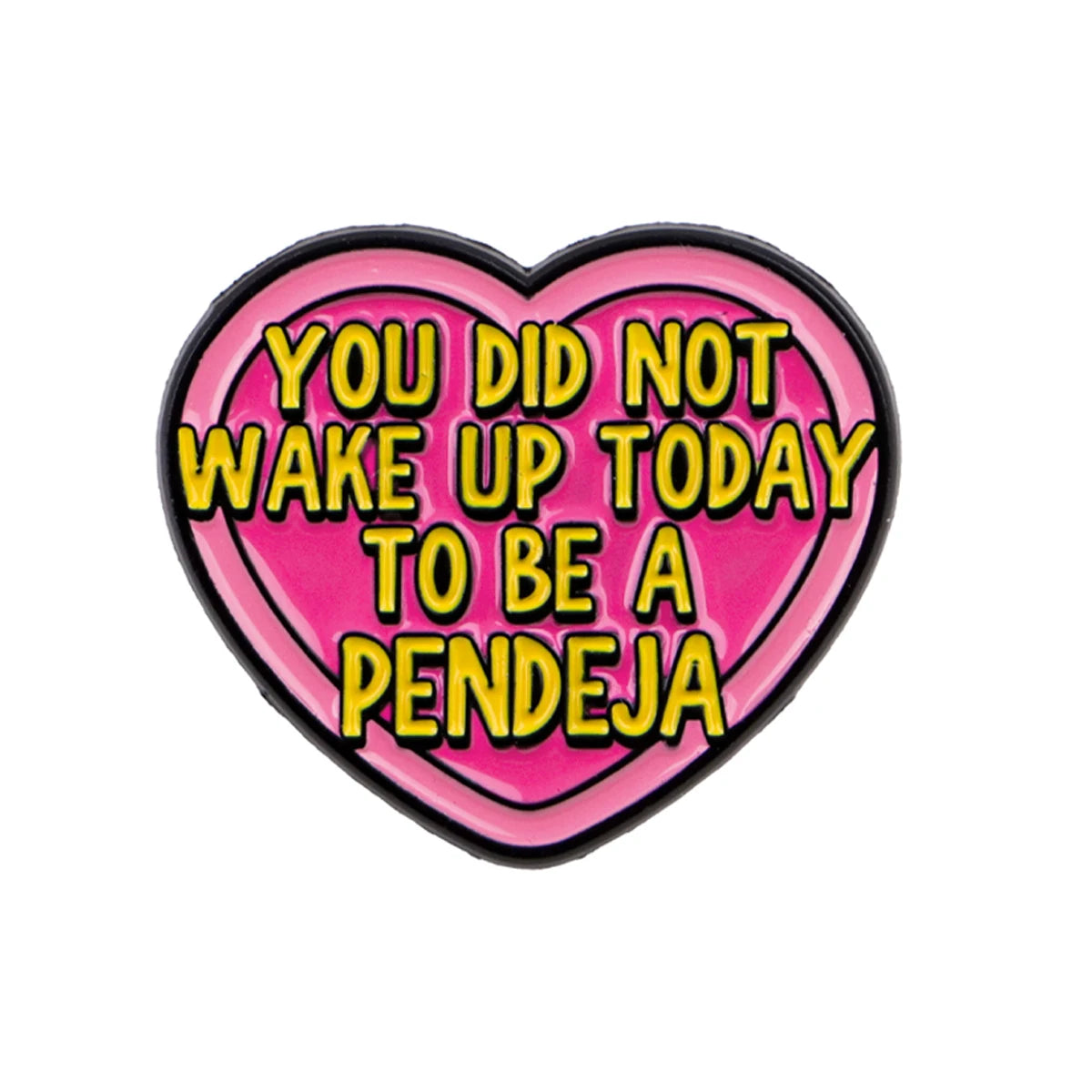 A heart-shaped pin with a sharp, confronting quote. For those who love humor with an edge and statements that stick.
